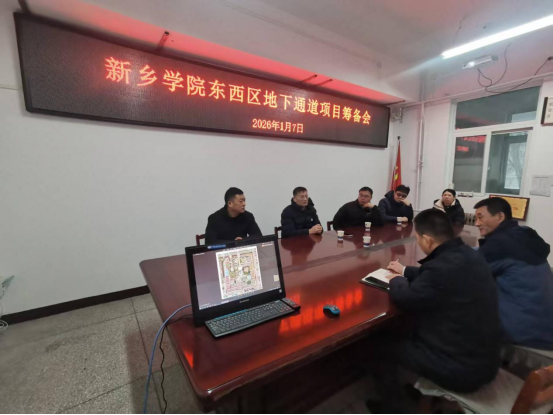1月7日上午,市国动办主任韩斌、副主任邢永正带领国动办总工、工程科负责人和新乡市城投集团工程部一行六人到我校开展项目调研。副校长赵伟杰对调研组表示热烈欢迎,三方围绕“新乡学院东西校区人防工程连接通道项目”这一核心议题进行了深入沟通。基建处黄家骏、冯红卫以及相关科室负责人参加了调研会。